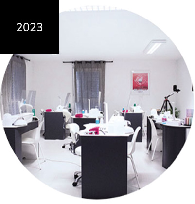 Als Trendsetter erkannten wir sehr früh den Hype der Babyboomer-Technik. Im Jahr 2017 wurden spezielle Rezepturen in der eigenen Manufaktur ausgearbeitet, um ganz individuell auf die Bedürfnisse der Kundinnen und Kunden eingehen zu können. Das Resultat ist die Entwicklung der Modelage-Gele Camouflage White und Light Pink.